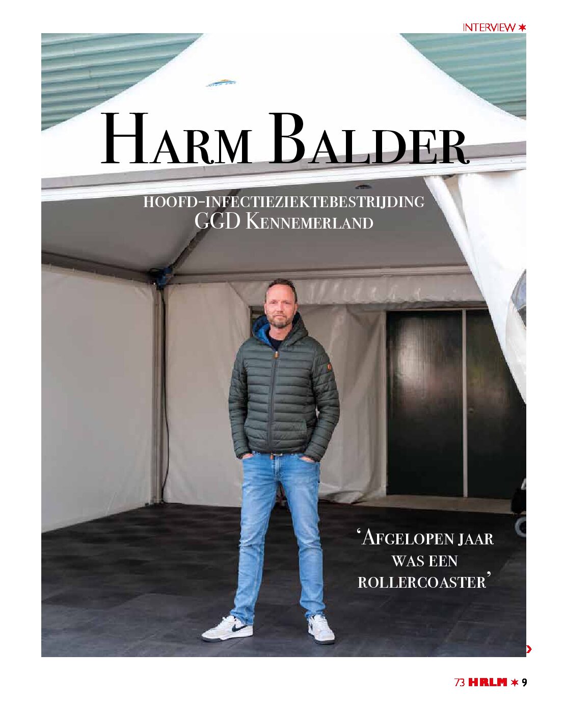 Eind december 2019 kregen ze bij de GGD de eerste signalen binnen, dat er iets gaande was in China. De focus lag op Schiphol, in de verwachting dat corona met Chinezen mee naar Nederland zou reizen. Uiteindelijk liep het anders en kwam het virus met de terugkerende wintersporters in februari 2020 bij ons binnen. Voor Harm Balder hoofd infectieziektebestrijding GGD Kennemerland was afgelopen jaar een rollercoaster. “We hadden te maken met een nieuw virus waarbij onduidelijk was hoe de besmetting precies verliep. Mede door de opkomst van nieuwe mutaties is het virus nog steeds niet onder controle. We zitten nu midden in een derde golf. Corona zal altijd bij ons blijven, daar ben ik van overtuigd.” Tijdens een interview met TEXTSTUDIO voor de HRLM Haarlemse Stadsglossy blikt Balder terug op een enerverend jaar. (Foto: Linda Llambias)