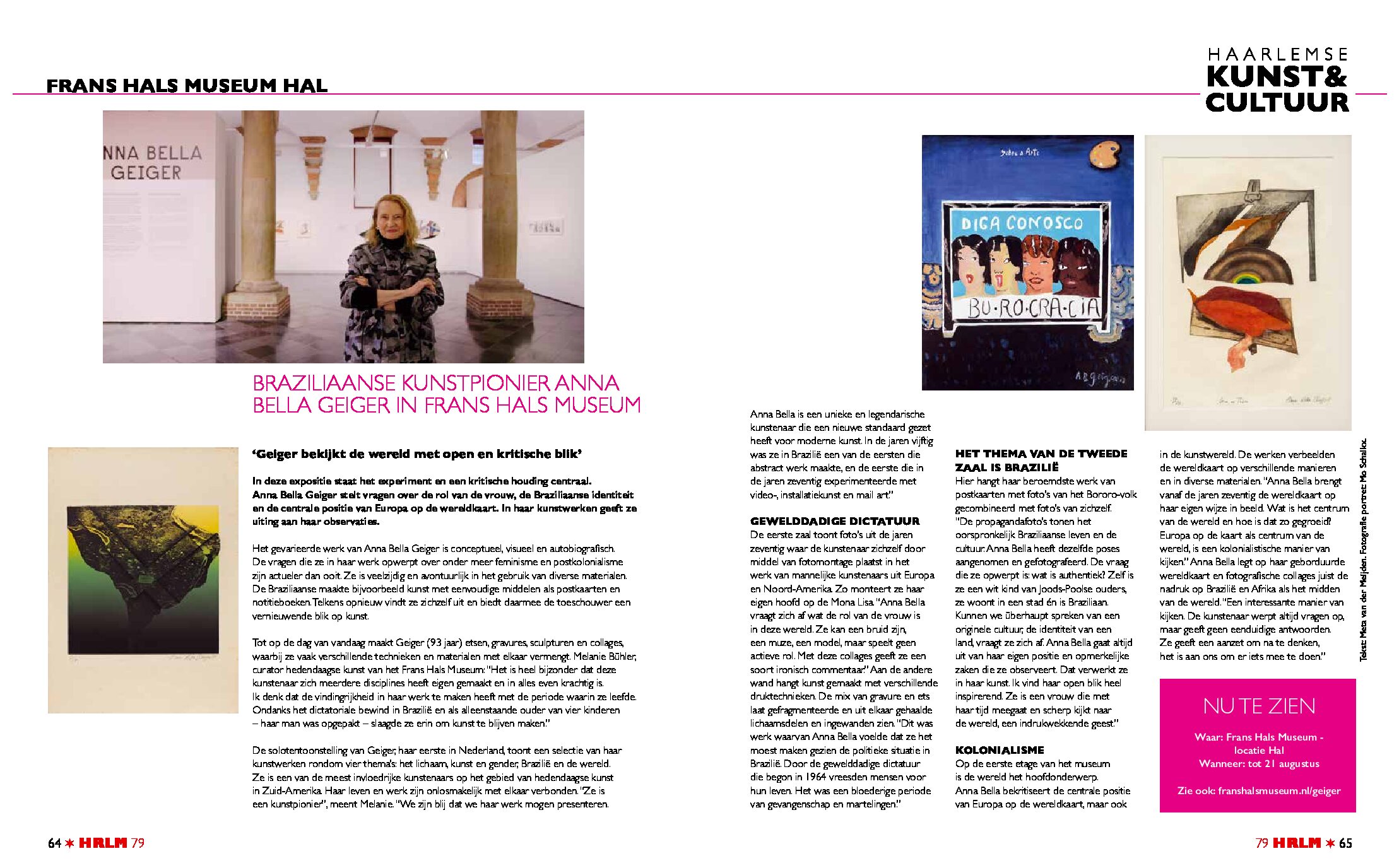 Het gevarieerde werk van Anna Bella Geiger is conceptueel, visueel en autobiografisch. De vragen die ze in haar werk opwerpt over onder meer feminisme en postkolonialisme zijn actueler dan ooit. Ze is veelzijdig en avontuurlijk in het gebruik van diverse materialen. Tot op de dag van vandaag maakt Geiger (93 jaar) etsen, gravures, sculpturen en collages, waarbij ze vaak verschillende technieken en materialen met elkaar vermengt. Haar kunst is tot en met augustus te zien in het Frans Hals Museum locatie Hal. Melanie Bühler, curator hedendaagse kunst: “Het is heel bijzonder dat deze kunstenaar zich meerdere disciplines heeft eigen gemaakt en in alles even krachtig is. In deze expositie staat het experiment en een kritische houding centraal”, deelt ze met TEXTSTUDIO tijdens een interview in opdracht van HRLM Haarlemse Stadsglossy. “Geiger stelt vragen over de rol van de vrouw, de Braziliaanse identiteit en de centrale positie van Europa op de wereldkaart.” De solotentoonstelling toont een selectie van haar kunstwerken rondom vier thema’s: het lichaam, kunst en gender, Brazilië en de wereld.